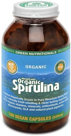 Green Nutritionals Organic Mountain Spirulina 180 Capsules 520mg